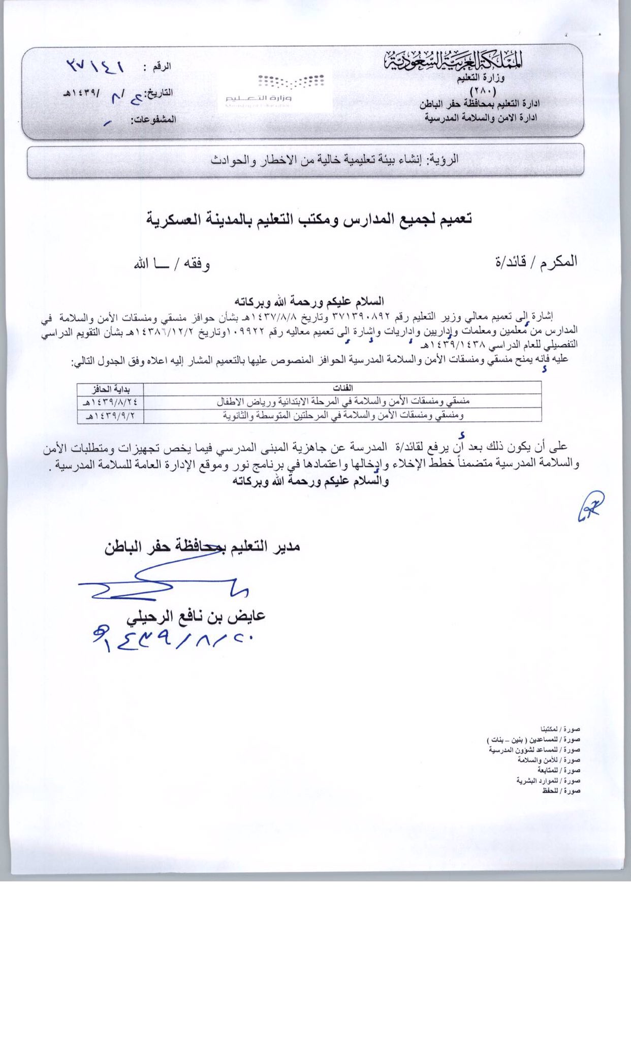 برامج الأمن والسلامة المدرسية On Twitter اعتمد مدير التعليم حوافز منسقي ومنسقات الأمن والسلامة المدرسية للعام الدراسي ١٤٣٩ ١٤٣٨