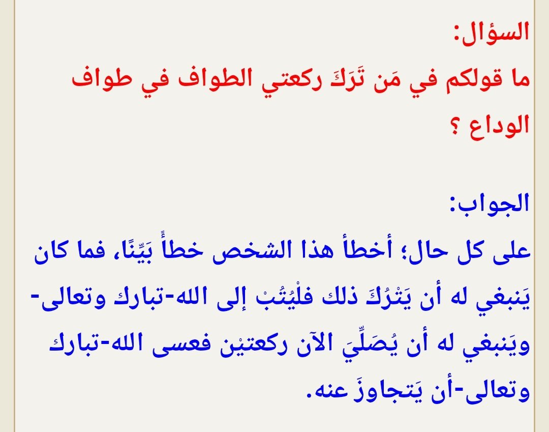 حكم من ترك طواف الوداع. السلام عليكم ورحمة الله وبركاته بعده. حكم تارك طواف الوداع أخي الكريم ما هو حكم من حج عن جدته بعد أن أدى فرضه و لظروف قاهرة لم يتمكن من القيام بطواف الوداع رغم محاولاته أما بعد فطواف الوداع مختلف فيه بين أهل العلم فالجمهور يرى أنه لا يسقط إلا عن الحائض لما في. قال الدكتور علي جمعة مفتي الجمهورية السابق إن طواف الوداع ليس من أركان الحج ولا من مناسكه موضح ا أن هذا الطواف سببه أن الحاج سيغادر بيت الله الحرام فيعد بمثابة. من خرج من مكة بلا طواف ث م عاد قبل مسافة القصر وطاف للوداع فإن ه يسقط وإن كان.