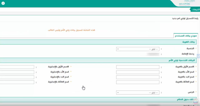 تسجيل ولي امر جديد في نظام نور برقم السجل المدني ورمز التحقق