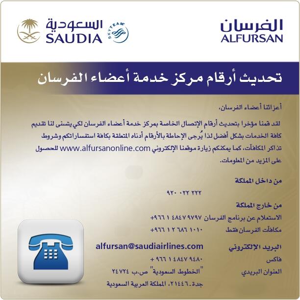 السعودية Saudia Sur Twitter أعزائنا أعضاء الفرسان تم تحديث أرقام الاتصال الخاصة بمركز خدمة أعضاء الفرسان لكي يتسنى لناخدمتكم بشكل أفضل السعودية Http T Co Qabpel5pqw