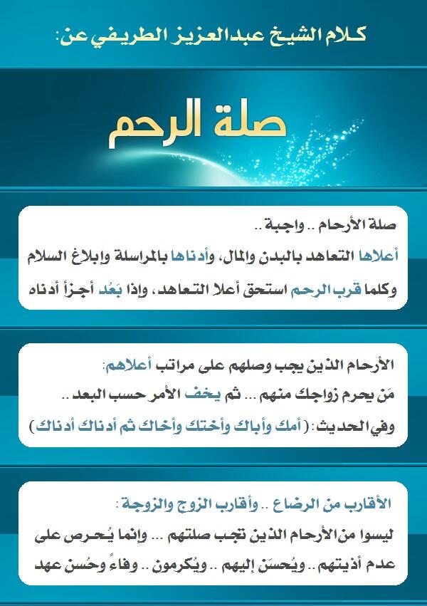 عبدالعزيز الطريفي Sur Twitter جواب الشيخ الطريفي عن من هم الأرحام الواجب وصلهم وهل الأنساب والرضاع منهم وما أقل الوصل الذي يسقط الواجب Http T Co 9egnyo5ha9 الإشراف